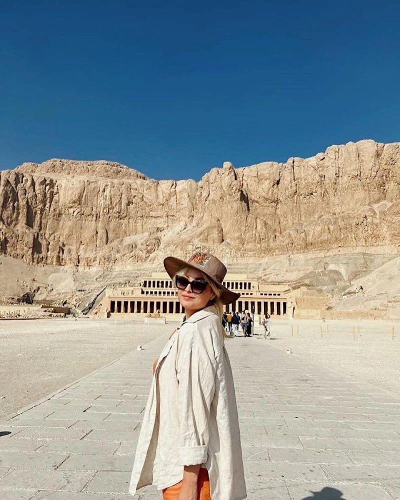 From the desert, I journeyed south to Luxor, the ancient city once known as Thebes. Every stone here feels alive with memory. In the Valley of the Kings, I walked down into tombs painted in brilliant blues and golds that had survived thousands of years untouched by time. Later, standing before the Temple of Hatshepsut, I imagined boats once arriving at its base — a grand entrance to eternity itself.